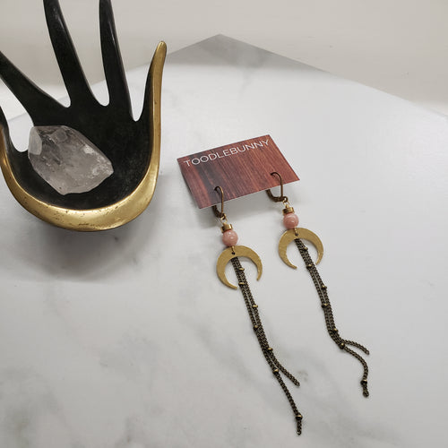 Asymmetric Stone Eye Earrings - Pink Jasper