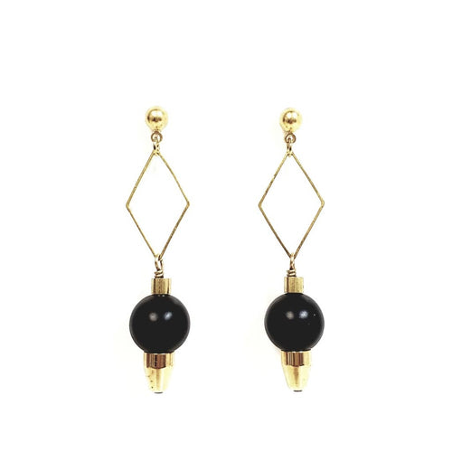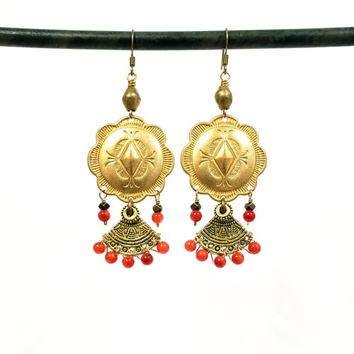 Curacao Geometric Brass Tin Drop Earrings - Red