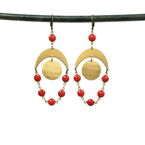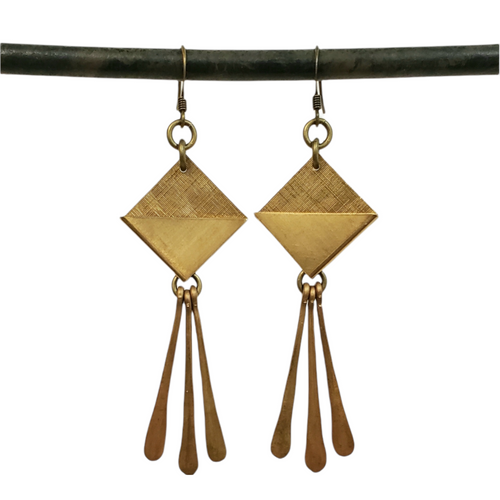 Geometric Triangle Point Drop Earrings - Red Jasper