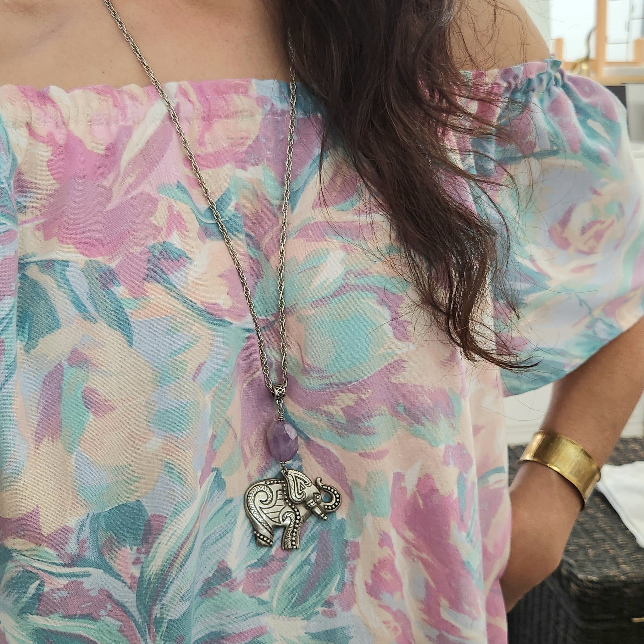 • Load image into Gallery viewer, Amethyst Lucky Elephant Pendant Necklace
