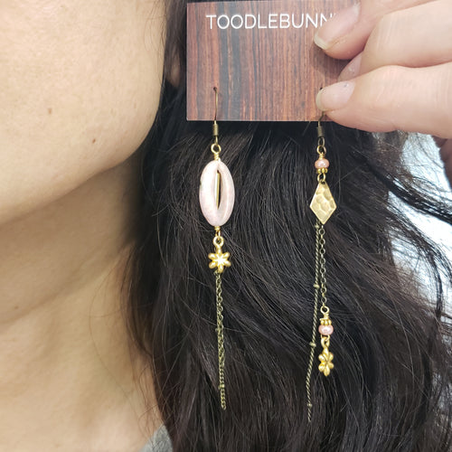 Asymmetric Stone Eye Earrings - Pink Jasper